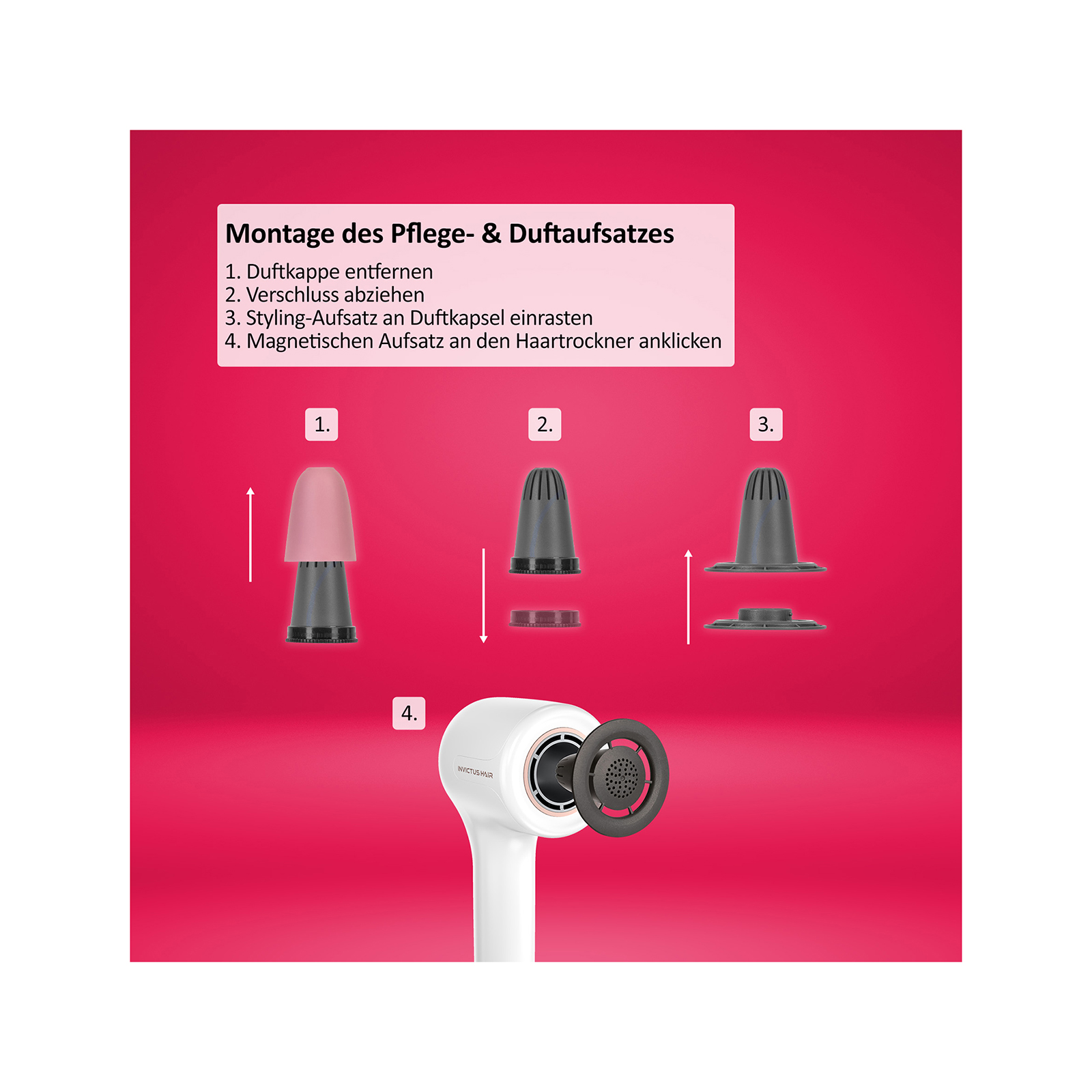 Erleben Sie eine völlig neue Art der Haartrocknung und gönnen Sie sich wohltuende Pflege- und Duftmomente mit dem INVICTUS HAIR D7 Pflege- und Duftaufsatz. Schlagen Sie jetzt zu und schenken Sie sich Wellness für Ihr Haar und Ihre Sinne!