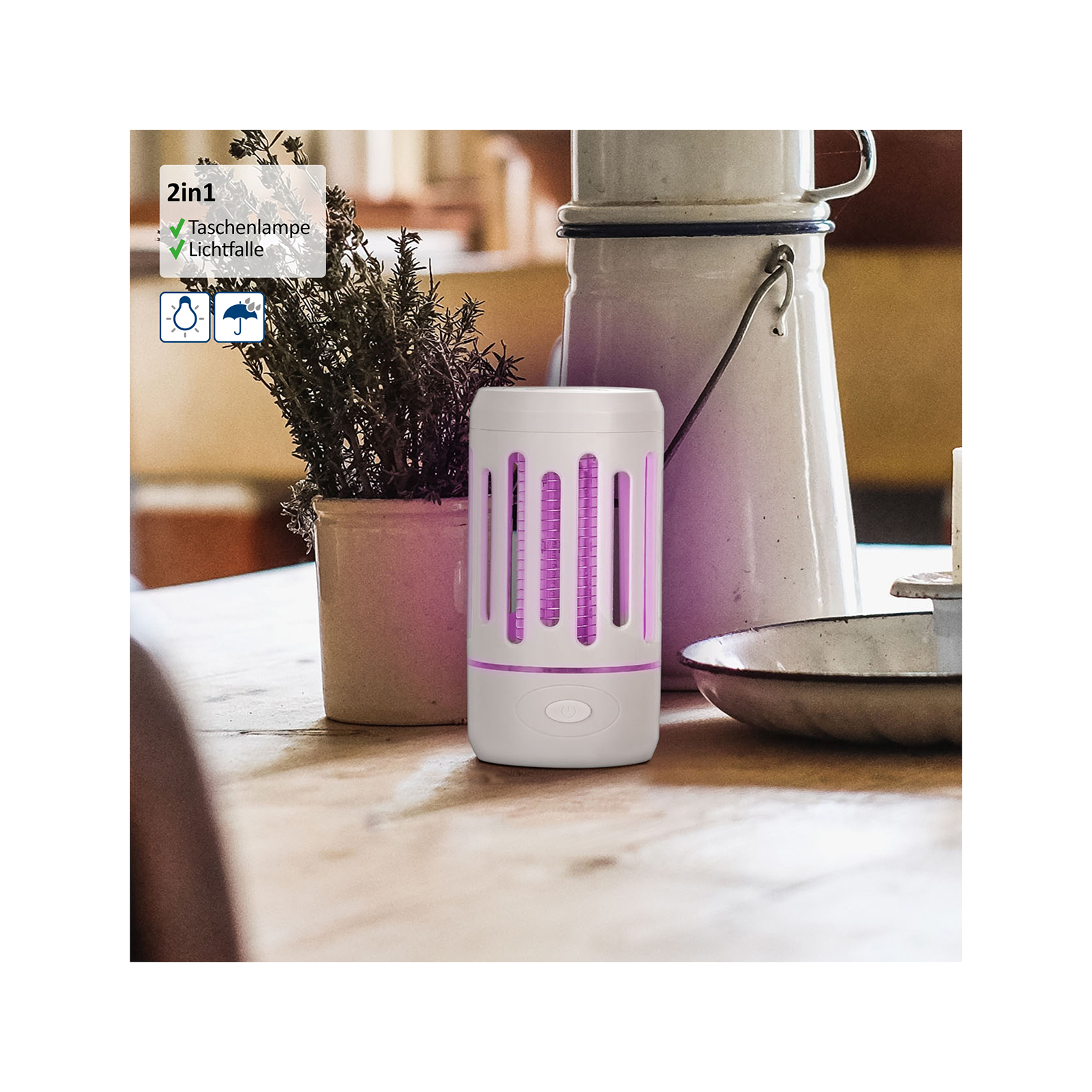 Die 2in1 Lichtfalle von Genius schützt Sie zuverlässig vor Insekten. Sie lockt Mücken mit UV-Licht an und entfernt 95 Prozent der Insekten schnell und schmerzlos durch ein Hochspannungsgitter. Das funktioniert komplett ohne Chemikalien, wodurch die Anwendung umweltfreundlich ist. So befreien Sie Ihre Räumlichkeiten problemlos von den summenden Fliegern, ohne Ihre Zeit von ihnen beeinträchtigen zu lassen. Genießen Sie das Haus, den Wintergarten, das Gartenhaus oder das Zelt wieder unbeschwert. Durch die praktische 2in1 Funktion schützen Sie sich aber nicht nur vor Mücken, sondern durchdringen auch mühelos die Dunkelheit. Verwenden Sie die 2in1 Lichtfalle dafür einfach als Taschenlampe. Gerade beim Übernachten im Zelt oder wenn Sie nachts aufstehen müssen, ist das ein willkommener Bonus. Mit dem Haken können Sie sie sogar aufhängen, falls Sie das Gerät nicht halten wollen.