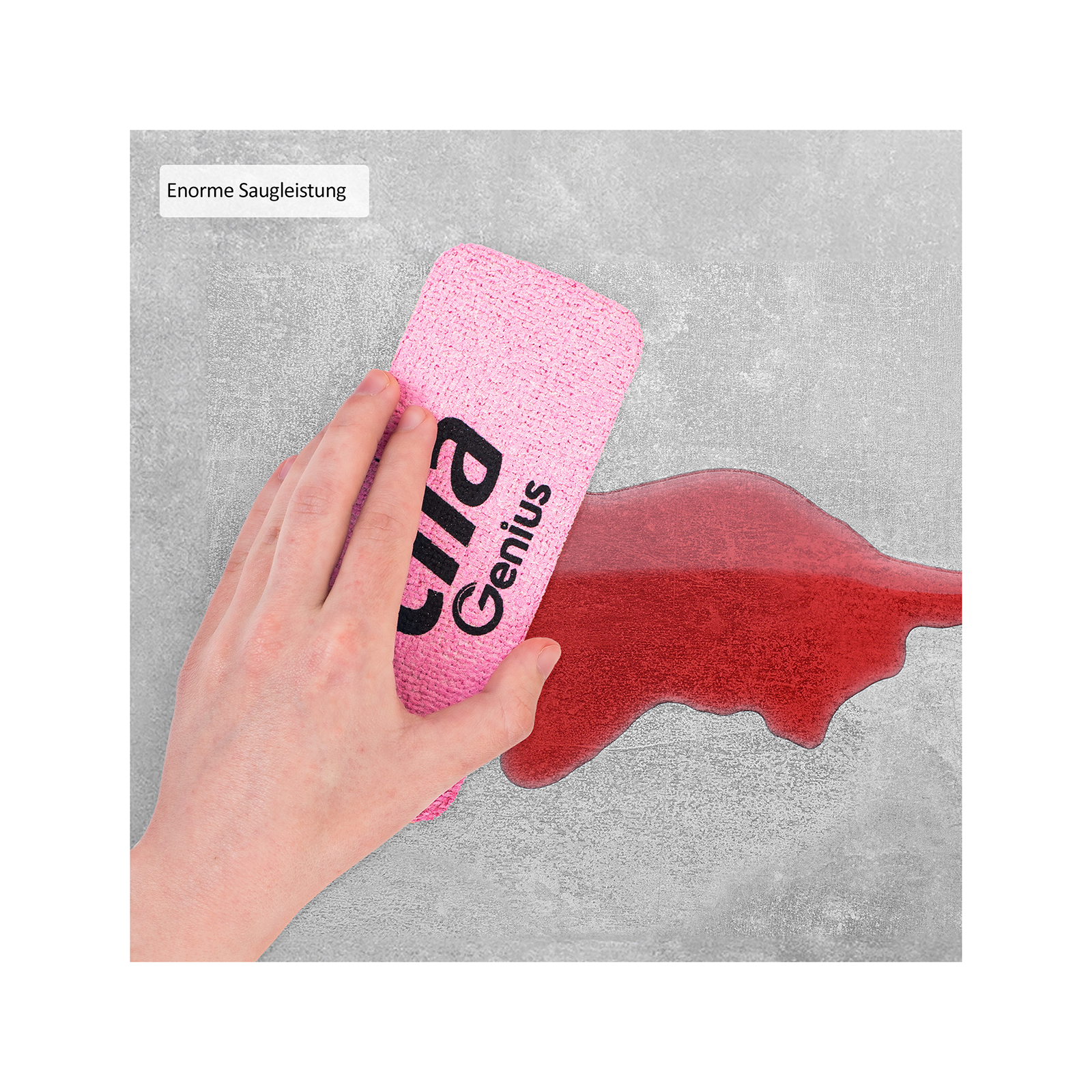 Dank seiner enormen Saugkraft nimmt der Genius Clia Rainbow Putzschwamm Schmutz und Flüssigkeiten mühelos auf. Egal ob in der Küche, im Bad oder an anderen Stellen im Haus: Wischen Sie Verschmutzungen problemlos mit ihm auf. Dank seiner Größe ist der Rainbow Schwamm auch ideal für die Reinigung größerer Flächen. Mit diesem Schwamm wird Putzen zum Kinderspiel! Und nach der Tiefenreinigung von Geschirr, Arbeitsflächen, Fliesen, Tischen, Glas, Porzellan und vielem mehr können Sie den Genius Clia Schwamm einfach in der Waschmaschine waschen. So bleibt er immer hygienisch und stets einsatzbereit.
