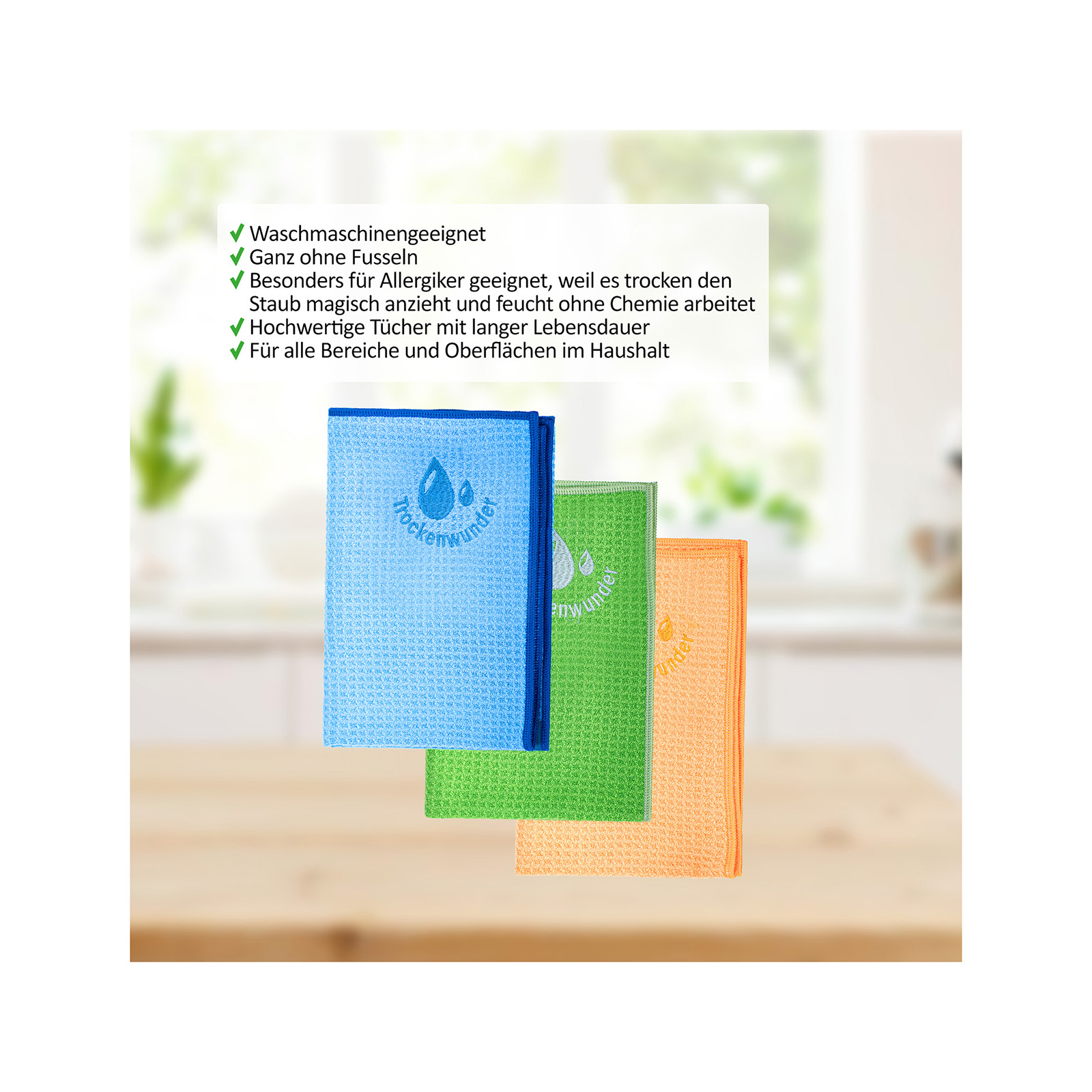 • Premium Tücher mit langer Haltbarkeit