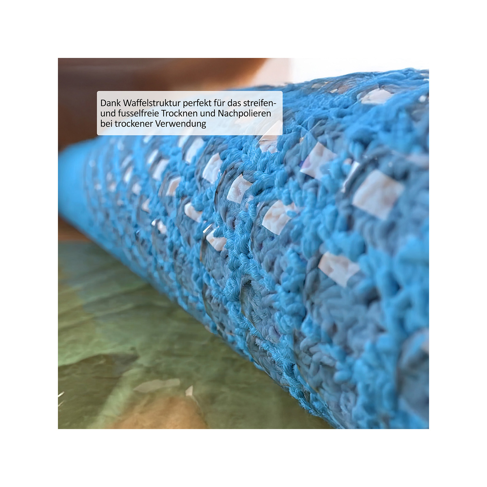 Nach der Reinigung folgt das perfekte Finish: Das Trocken-Wunder mit einzigartiger Waffelstruktur punktet mit extremer Saugstärke. Es sorgt somit für eine fusselfreie Trocknung von Geschirr, Gläsern und Oberflächen. Besonders geeignet ist es für Küche und Bad – ohne Wasserflecken oder Rückstände. Was bleibt, ist strahlender Glanz!