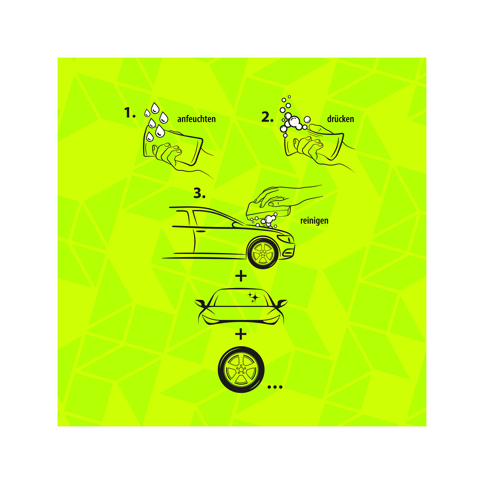 Durch einen leichten Druck auf den Schwamm setzen Sie das Auto-Shampoo frei, das in Kombination mit Wasser einen sanften Schaum bildet. Damit beseitigen Sie auf einfache Weise Schmutz von Ihrem Fahrzeug, sodass es schnell wieder glänzt und wie neu aussieht.