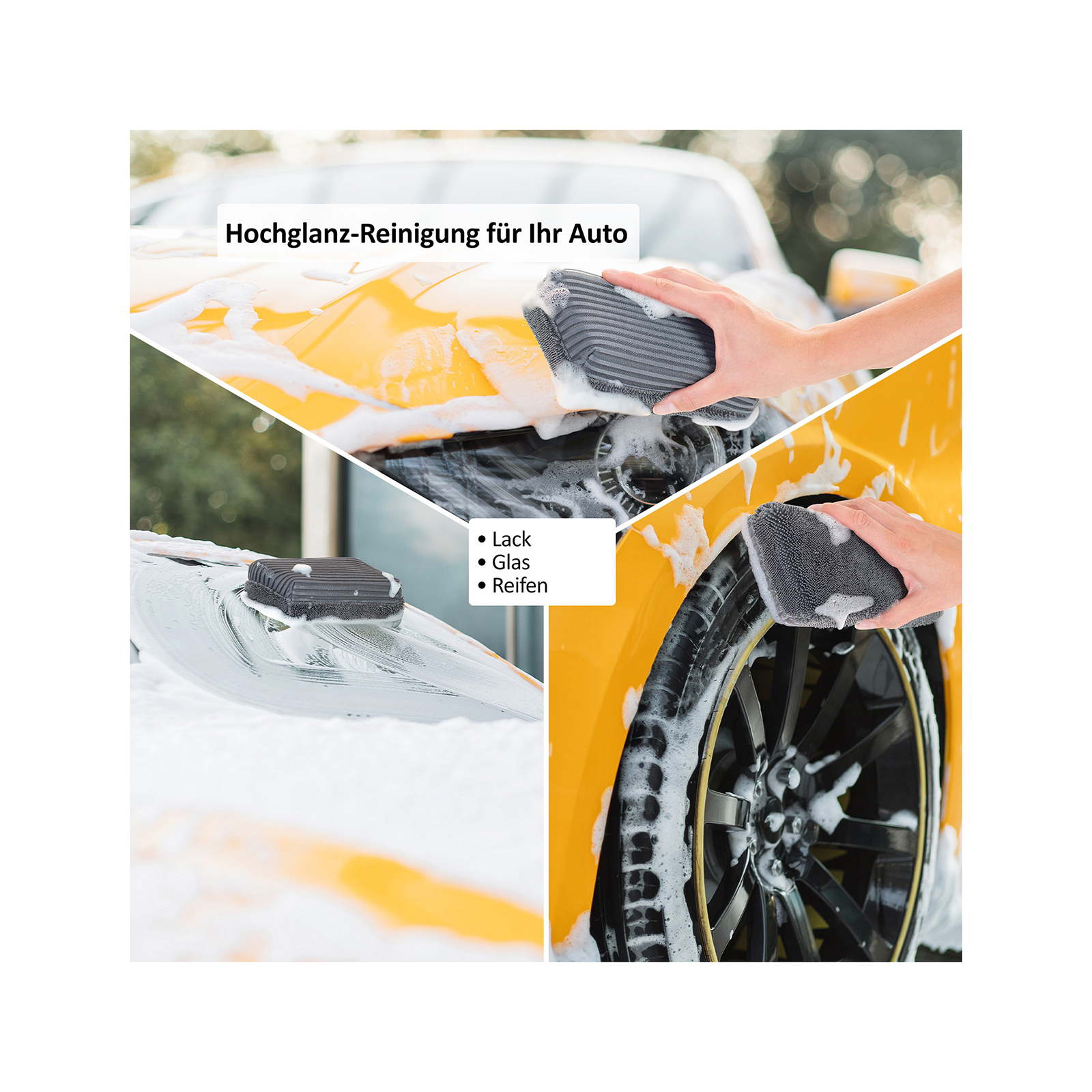 • Kratzsicherer Duo-Auto-Schwamm mit integriertem Auto-Shampoo
