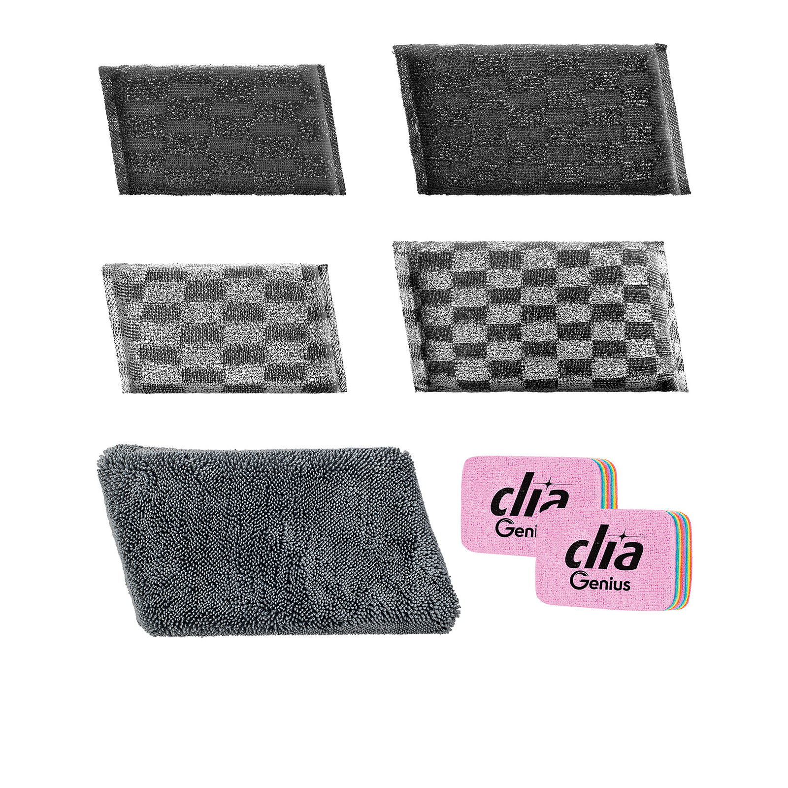 Ob sanfte Reinigung oder kraftvoll gegen Eingebranntes – mit den Genius CLIA Schwämmen finden Sie für jeden Bedarf den passenden Helfer. Bestellen Sie jetzt das 7-teilige Set und erleben Sie die neue Art des Putzens – schnell, hygienisch, nachhaltig und effektiv!