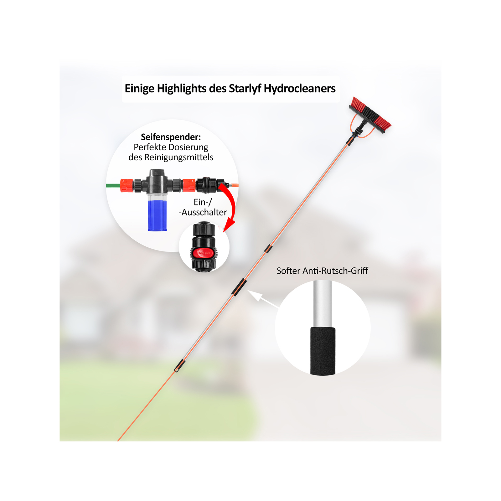 Ab und zu ist es an der Zeit, das Dach und die Wände Ihres Hauses sowie die Solarpaneele und Fenster zu säubern. Wetterbedingungen wie Stürme und Regen können diese schwer zugänglichen und hohen Stellen verunreinigen. Doch keine Sorge – mit der Starlyf Hydrocleaner Reinigungsbürste von Genius können Sie die wackelige Leiter und waghalsige Klettereien hinten anstellen. Mit ihr kommen Sie in den Genuss einer sicheren und einfachen Reinigung, die mühelos vonstatten geht!