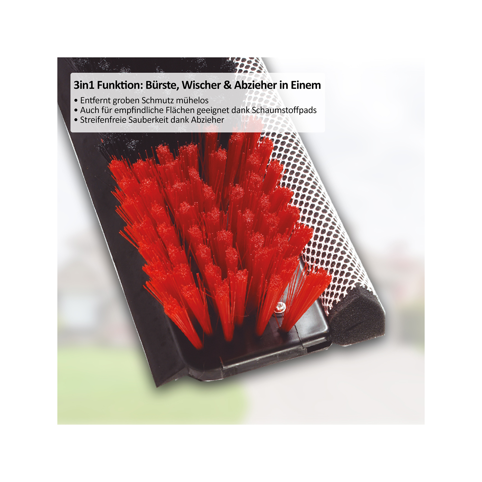 • Bürste und Wischer in einem: Fenster z.B. erst einseifen und schrubben und dann mit dem Wischer streifenfrei abziehen