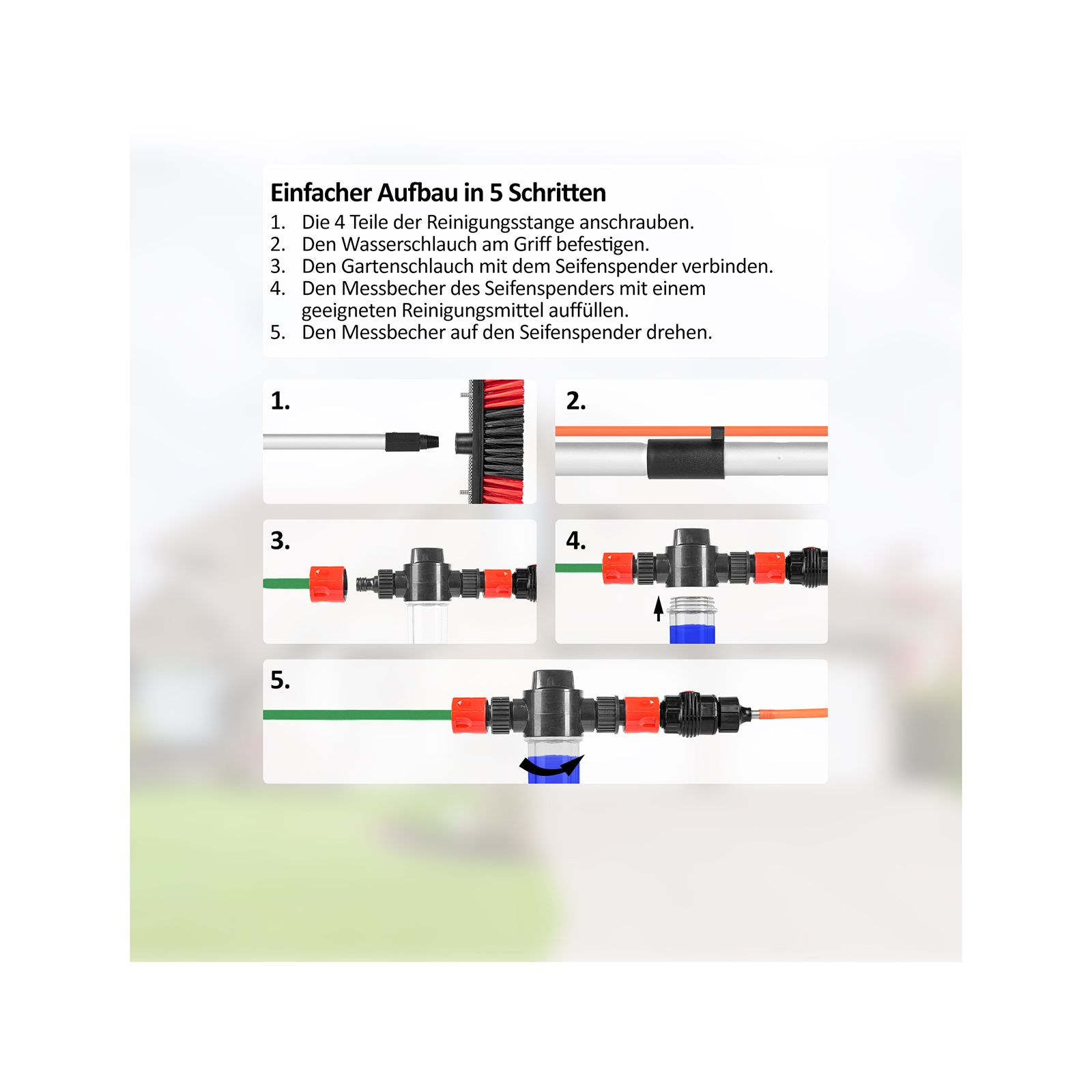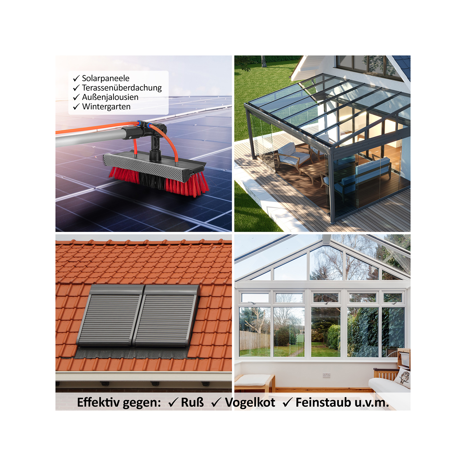 • Vielseitige Anwendung: Reinigung von Dächern, Solarpaneelen, Wänden, Wohnwagen, Autos, hochliegenden Fenstern etc.
