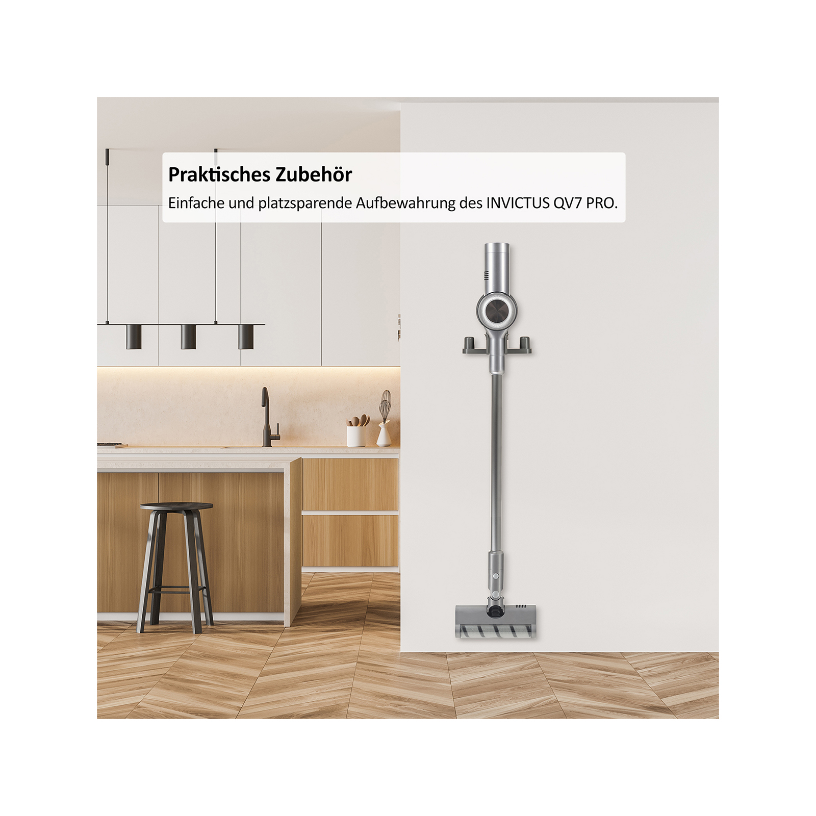 Das 17-teilige Set des INVICTUS QV7 PRO lässt fast keine Wünsche offen und bietet für jede Reinigungssituation das passende Zubehör. Der Verlängerungsschlauch ermöglicht eine erweiterte Reichweite, wodurch auch entfernte Ecken und hohe Regale problemlos und ohne Frust erreicht werden können. Dank des LED-Displays haben Sie alle wichtigen Informationen immer auf einem Blick. Zudem ist die Saugleistung des INVICTUS QV7 PRO je nach Verschmutzungsgrad einstellbar: Die drei Modi „ECO“, „MED“ und „TURBO“ ermöglichen es Ihnen, immer genau die Leistung zur Hand zu haben, die Sie gerade benötigen. Allergenen und Viren wird dabei mithilfe des integrierten HEPA-Filters stets der Kampf angesagt. Die LED-Fugendüse lässt kein Staubkorn unentdeckt und bringt jeden Schmutz ans Licht – für ein sauberes Zuhause! Dank der Wandhalterung schmiegt sich das schicke Gerät perfekt in Ihr modernes Ambiente und ist immer griffbereit, wenn Sie es gerade benötigen. Verschiedene Bürsten und Düsen ermöglichen Ihnen eine Reinigung nahezu aller Oberflächen. Profitieren Sie von einer langen Laufzeit und der kurzen Ladezeit des Akkus. Ein echter Alltags-Allrounder!