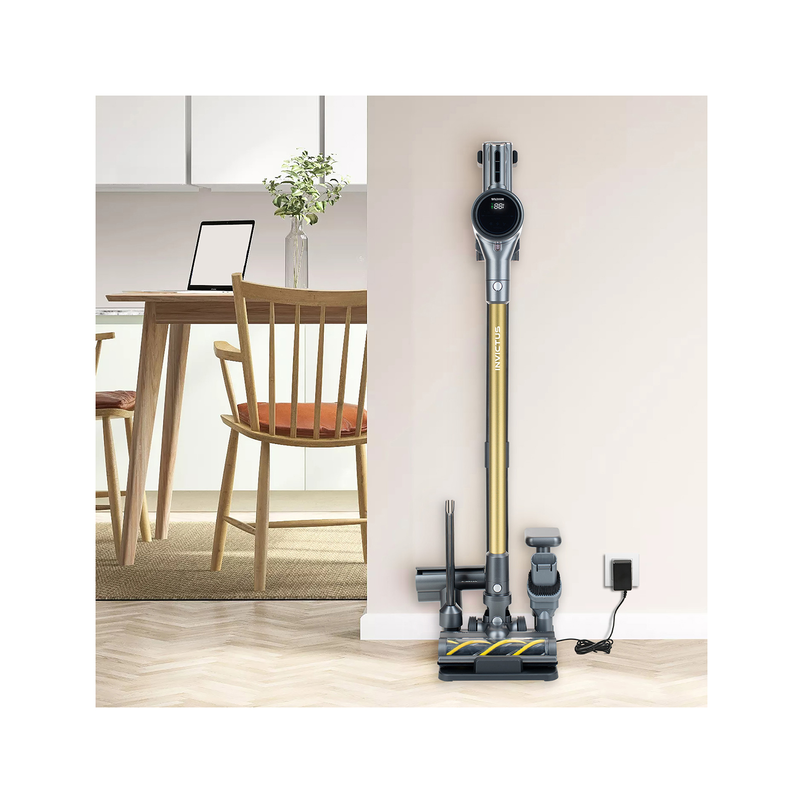 Endlich kein Zusammensuchen von Einzelteilen mehr und vor allem kein leerer Akku, wenn Sie staubsaugen müssen. Mit dieser Aufbewahrungsstation haben Sie alles Nötige für den INVICTUS X8 FACELIFT und den INVICTUS X8 PRO FACELIFT immer beisammen. Zusammen mit dem Hauptgerät bewahren Sie Ihr wichtigstes Haushaltsgerät in einer eleganten und praktischen Aufbewahrungsstation an einem zentralen Ort auf. Egal, ob Sie den INVICTUS X8 FACELIFT oder seinen großen Bruder, den INVICTUS X8 PRO FACELIFT besitzen. Mit dieser Aufbewahrungsstation nimmt der Staubsauger kaum Platz in Ihren vier Wänden ein. Ganz im Gegenteil: Ein Staubsauger von INVICTUS in seiner Docking-Station ist ein echter Blickfang! Ob im Wohnzimmer oder der Küche, die hochmodernen INVICTUS X8 FACELIFT Modelle mit LED-Akkuanzeige, Wechsel-Akkus und viele weiteren technischen Innovationen ruhen aufgeräumt in der Aufbewahrungsstation und laden für den nächsten Einsatz. Ob Haushaltsputz oder schnell mal ein paar Krümel beseitigen – den INVICTUS X8 FACELIFT oder den INVICTUS X8 PRO FACELIFT haben Sie mit dem passenden Aufsatz immer zur Hand und beseitigen Verschmutzungen schnell und einfach.