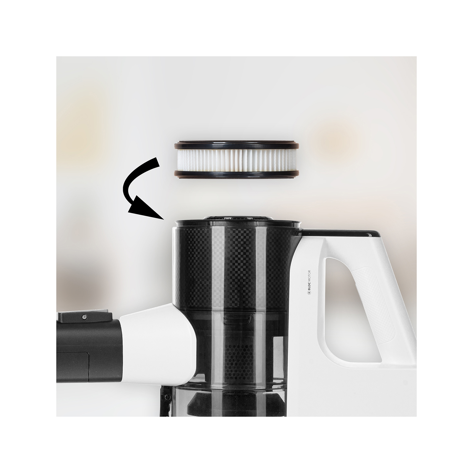 Wenn Sie den XL-Staubbehälter mit einem Fassungsvermögen von 0,7 Litern reinigen möchten, ist das ganz leicht. Dank der Quick-Clean-Funktion lässt sich der Behälter einfach und schnell per Knopfdruck entleeren. Mühevolles Lösen und Entsorgen eines Staubbeutels gehört somit der Vergangenheit an.