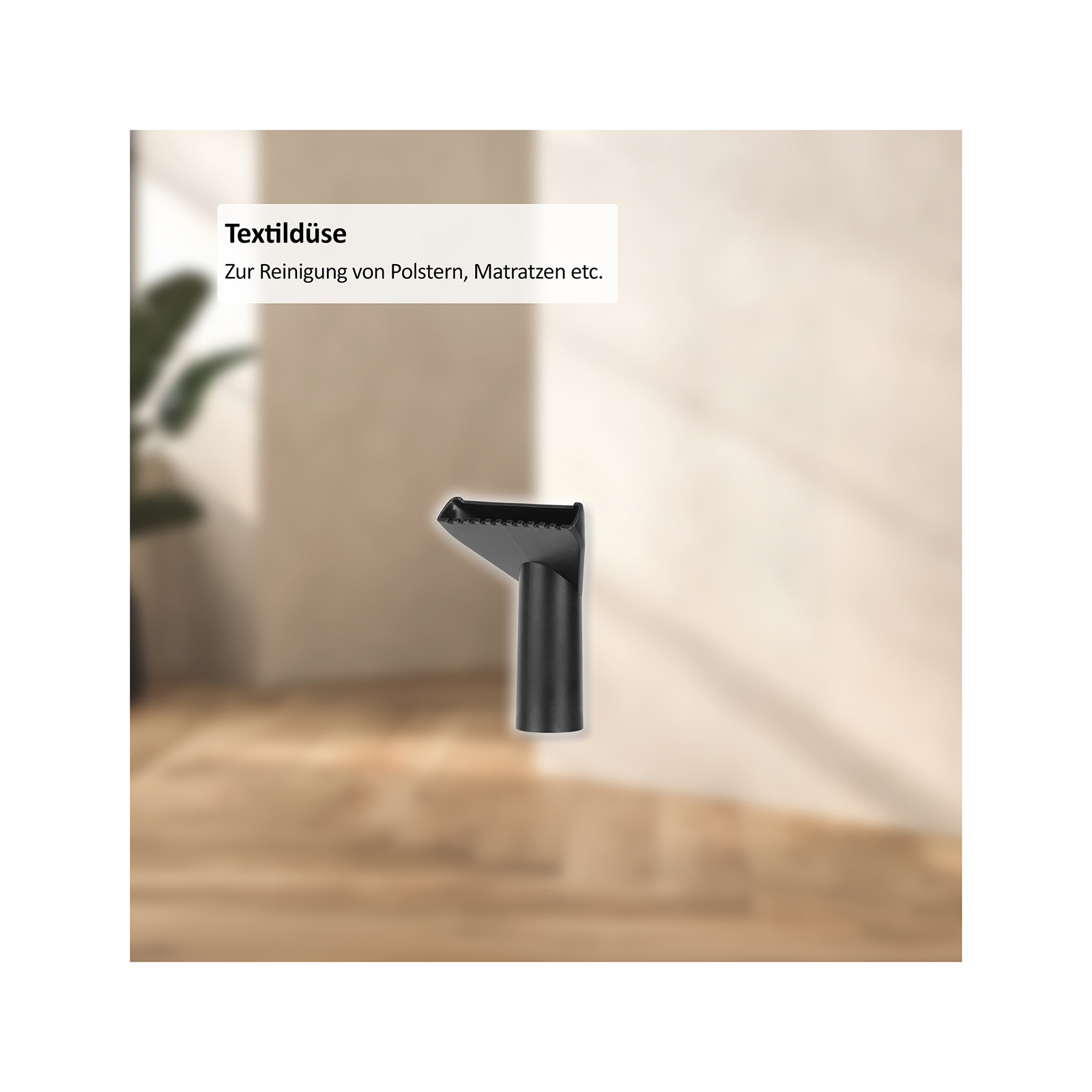Neben der Hartbodendüse ist die Textildüse perfekt, wenn es um die Reinigung von Polstermöbeln, Autositzen, Vorhängen oder Teppichen geht. Sie entfernt tiefsitzenden Staub und Schmutz, ohne die empfindlichen Stoffe zu beschädigen. Mit ihr befreien Sie jegliche Polster und Textilien von Haustierhaaren, Krümeln oder feinen Staubpartikeln – die Textildüse sorgt dafür, dass Ihre Textilien sauber und frisch bleiben.