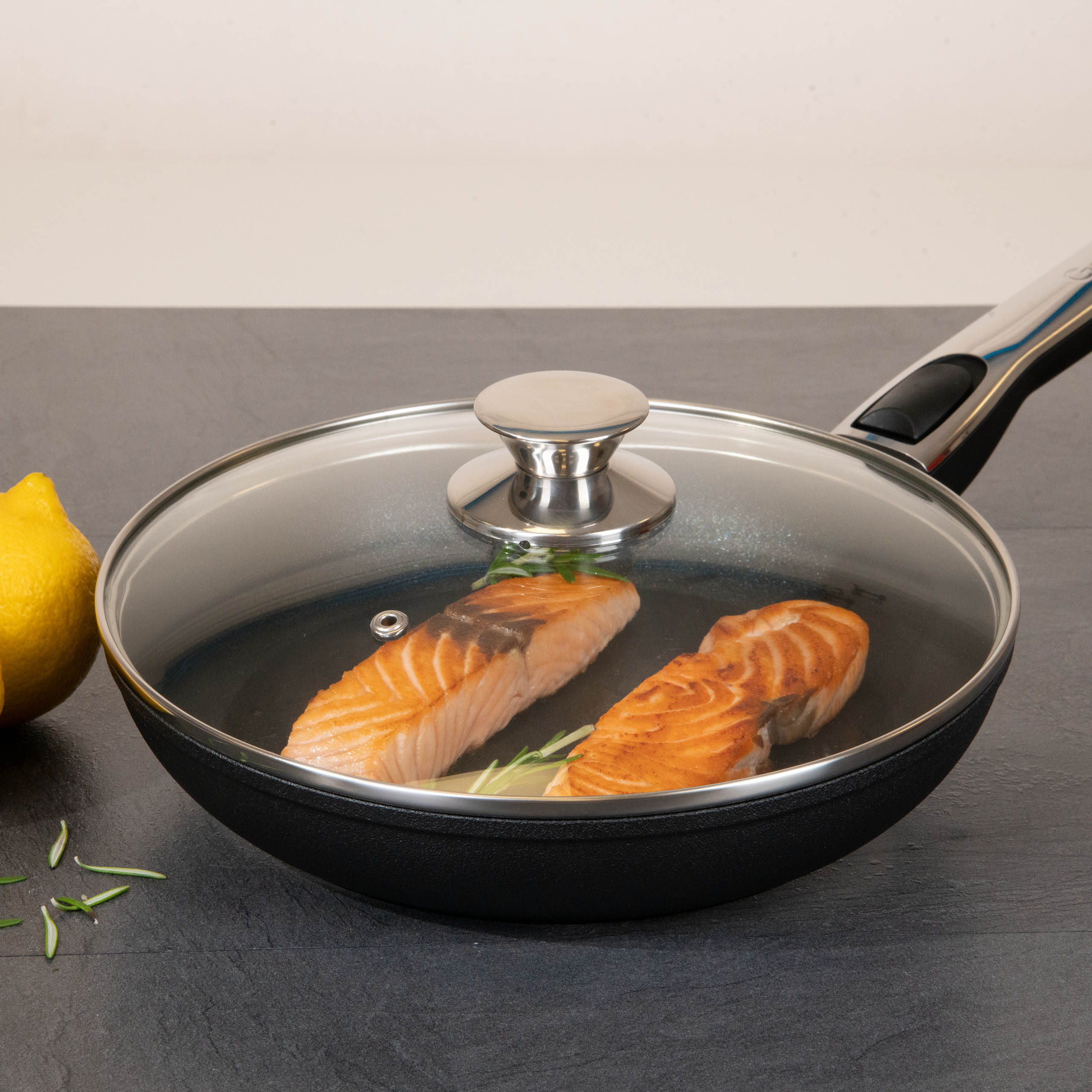 Cerafit Plasma verfügt über einen vollflächigen Induktionsboden, der eine schnelle und vor allem gleichmäßige Wärmeverteilung gewährleistet. Dank des abnehmbaren Griffs kann die Bratpfanne platzsparend verstaut und bei bis zu 260°C im Backofen genutzt werden. Der ansprechende Design-Glasdeckel mit Metallknauf ist ebenfalls backofengeeignet und ermöglicht praktisches Sichtkochen.