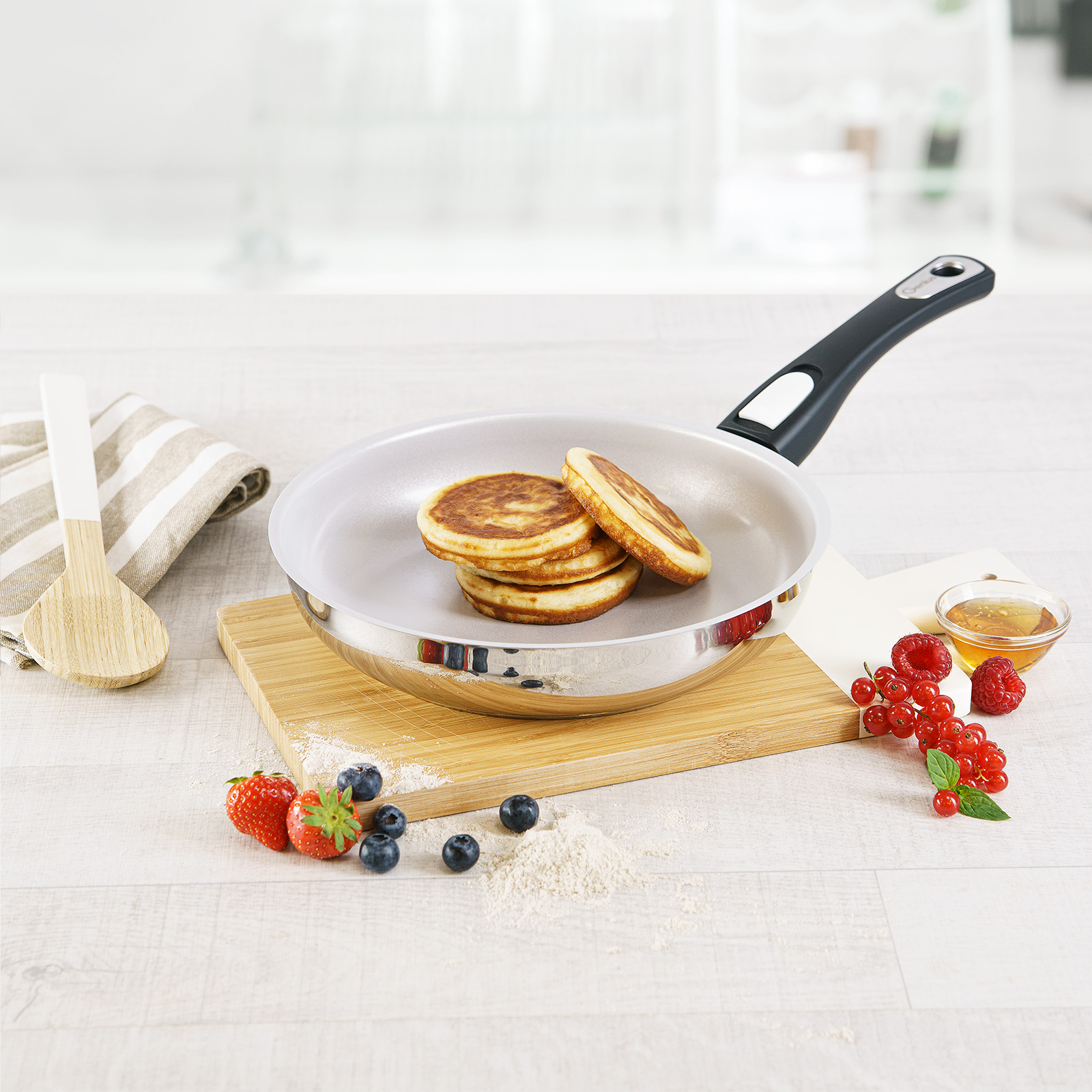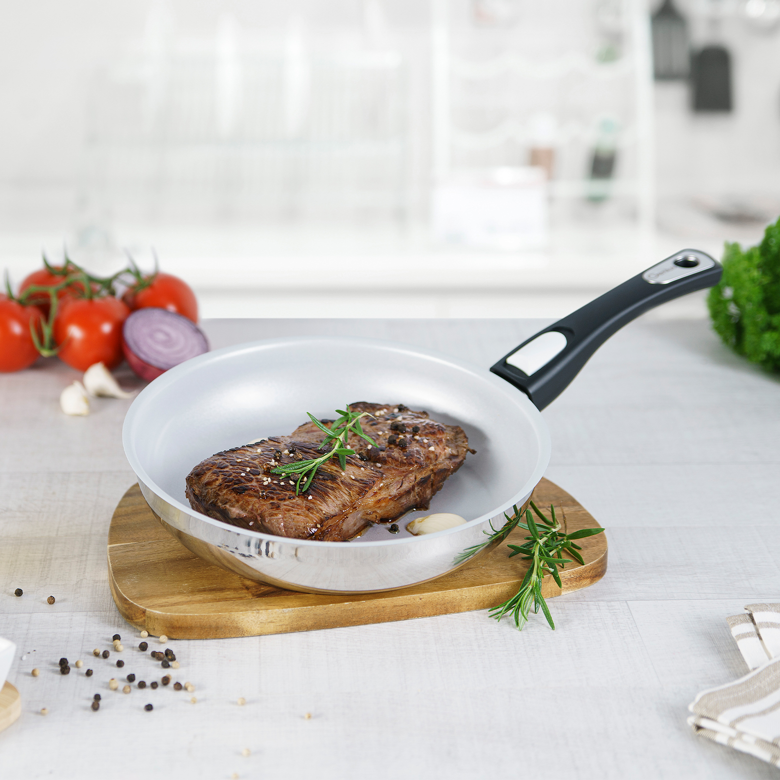 Cerafit Steel verbindet die besten Eigenschaften aus Edelstahl und Keramik und kreiert so eine hochwertige und robuste Pfanne mit besten Antihafteigenschaften!