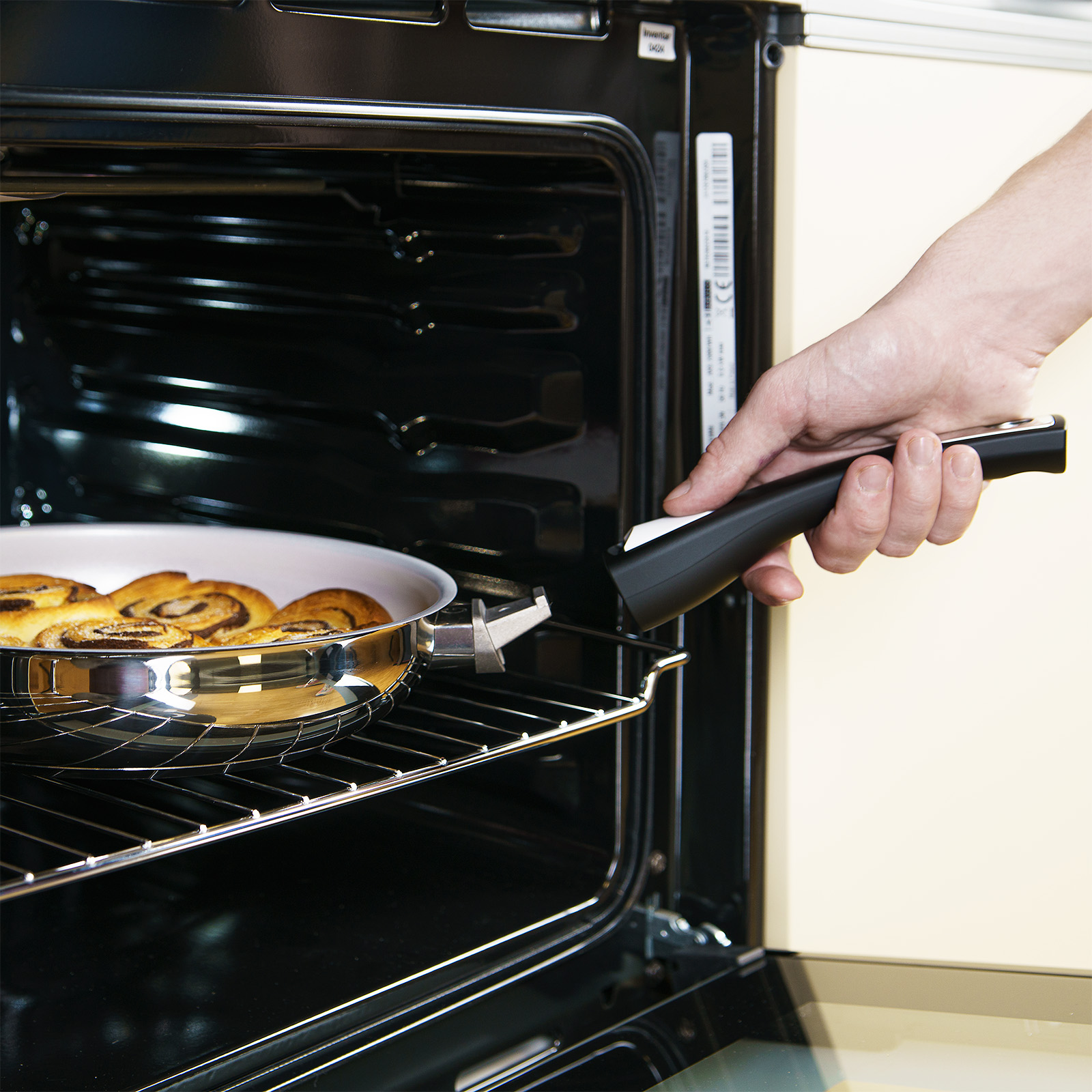 Die neu entwickelte Keramikbeschichtung verfügt über 60% bessere Antihafteigenschaften und Kratzfestigkeit im Vergleich zu anderen Antihaft-Pfannen. So kann auf Fett oder Öl während des Kochens verzichtet werden. Mit Cerafit Steel sind die Zubereitungsmöglichkeiten nahezu endlos – braten, backen, schmoren, kochen und vieles mehr! Dank des abnehmbaren Griffs ist die Antihaft-Pfanne auch zum Backen geeignet!