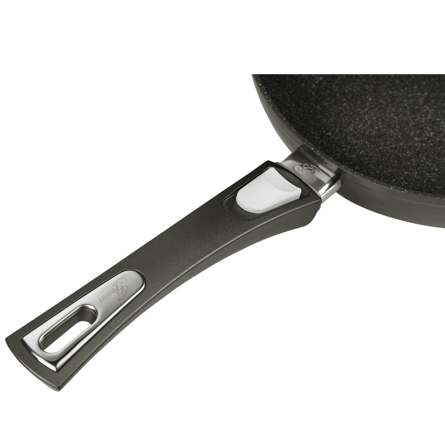 • Alle Pfannengriffe sind abnehmbar, dadurch können die Pfannen im Backofen genutzt oder ausgesprochen platzsparend verstaut werden!