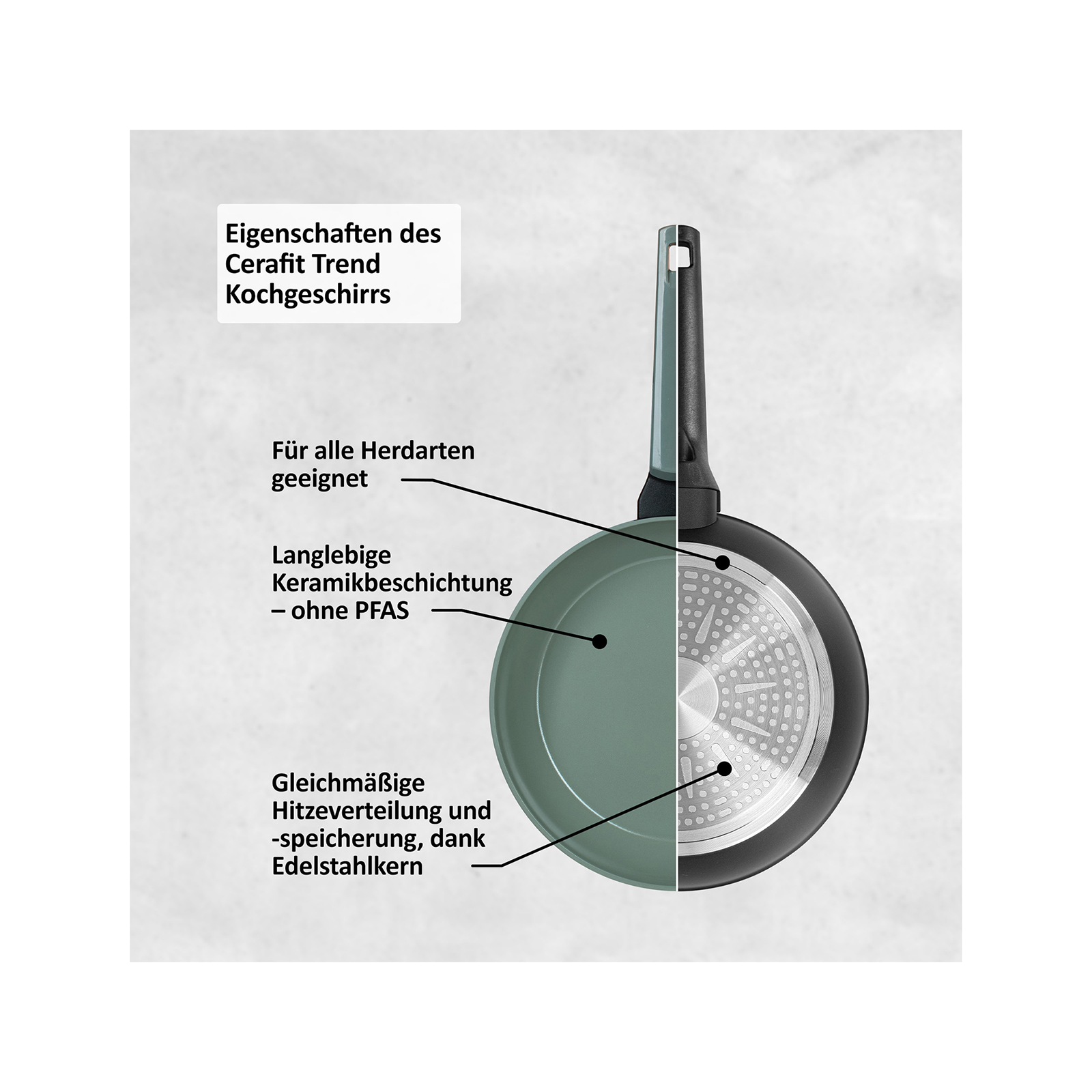 • Ob scharfes Anbraten oder schonendes Garen – Cerafit Trend ist die vielseitige Pfanne für tägliches Kochen