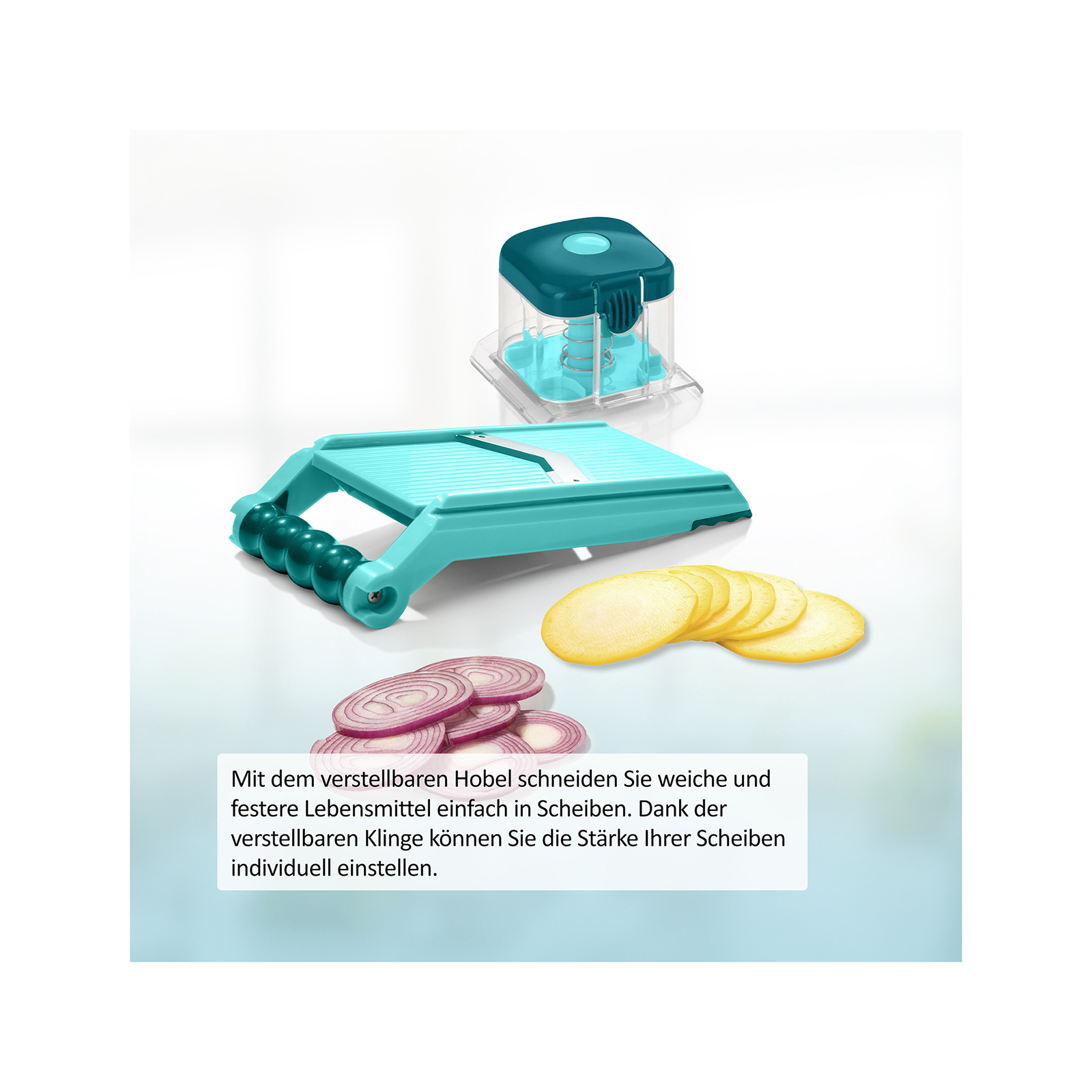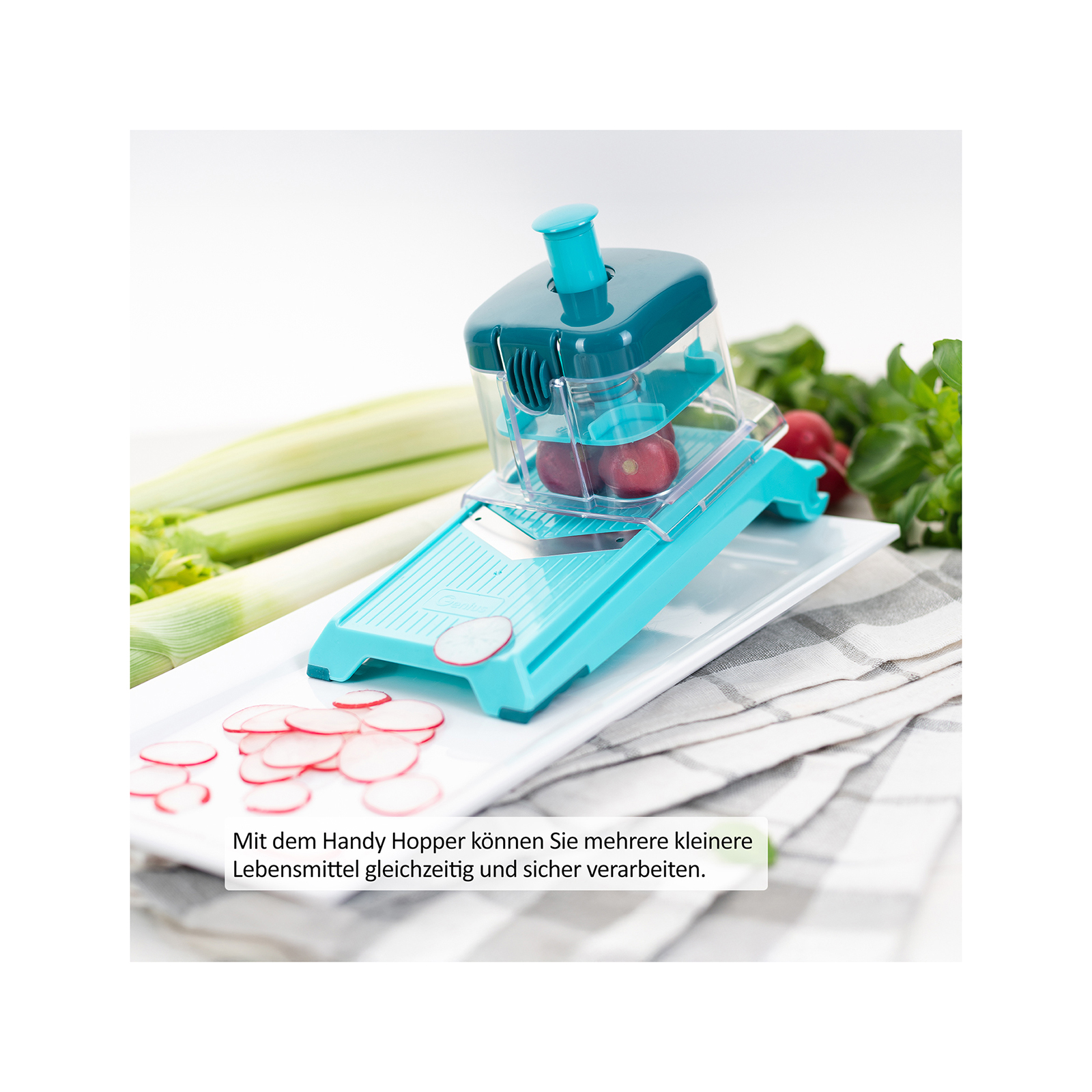 Der verstellbare Hobel und der Handy Hopper für den Nicer Dicer Chef Professional verhelfen Ihnen durch die einfachste Handhabung und die höchste Nicer Dicer Qualität zu Gemüse- und Obst-Scheiben in verschiedenen Stärken. Durch die vielfältigen Variationsmöglichkeiten sind Ihrer Kreativität keine Grenzen gesetzt!