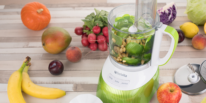 Eine Küchenmaschine auch für kleinere Haushalte: Der Feelvita Food Processor ist ein leichtes, kompaktes und platzsparendes Gerät!