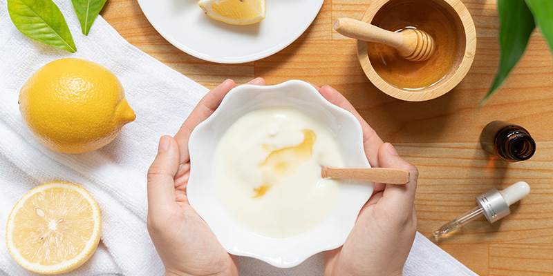 Quark und Zitronensaft vermengen und die Maske 15 Minuten einwirken lassen. Anschließend mit warmem Wasser abspülen.