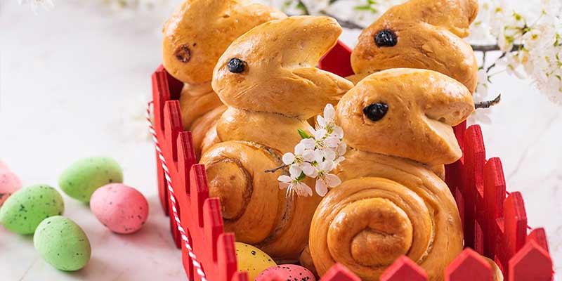 Der Hefehase ist eine gute Alternative für das Osternest. Neben selbst bemalten Eiern und Schokolade findet der Hefehase auch platz im Osternest. Zum Backen von 10 Stück benötigen Sie: