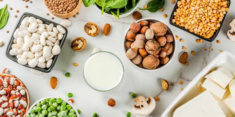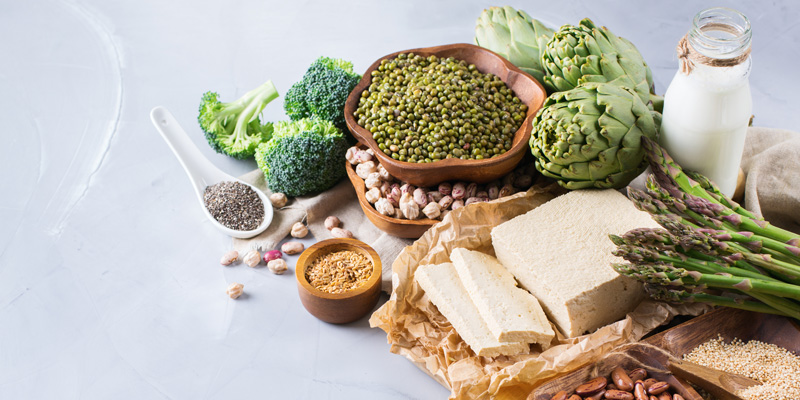 Als alternative Nahrungsmittel zu tierischen Produkten sind Sojaprodukte, Quorn, Seitan sowie Soja- und Weizenstärke gut geeignet.