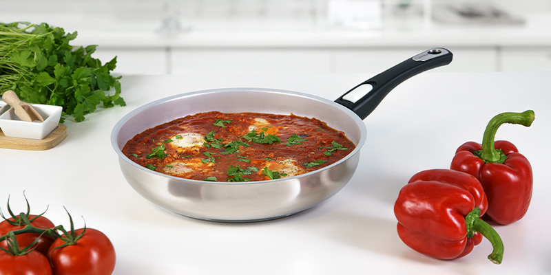• Edelstahlpfanne: Diese Pfanne ist bekannt für ihre Haltbarkeit und gleichmäßige Wärmeverteilung. Sie ist rostfrei und nach der Verwendung leicht zu reinigen.