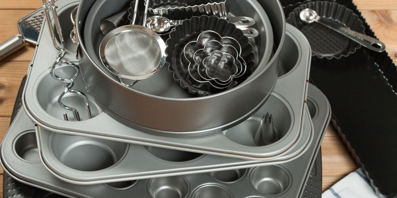 In erster Linie benötigt man zum Backen einen Ofen. Des Weiteren unterscheidet sich das Equipment je nach Gericht, welches gebacken werden soll. Standardmäßig zu Hause haben, sollte man Backformen wie z.B. eine Springform, Kastenform, Muffinform etc., Backbleche, Backofen-Rost, Backpapier und eine Auflaufform. Es sollte unbedingt darauf geachtet werden, dass das Equipment backofengeeignet ist!