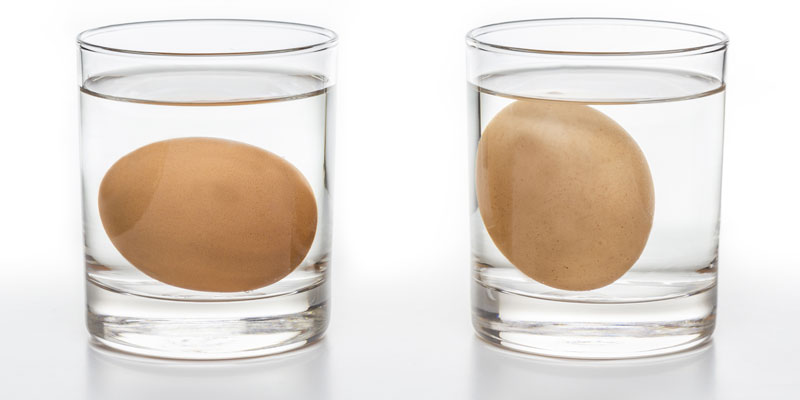 Nehmen Sie sich ein normales Wasserglas zur Hand und füllen es je nach Größe etwa bis zur Hälfte oder zu drei Viertel mit Wasser. Danach lassen Sie das Ei vorsichtig in das Glas hineingleiten. Steht das Ei senkrecht im Wasser bzw. mit dem unteren Teil nach oben gestreckt haben sich im inneren des Eis Gase gebildet und es sollte besser nicht mehr verzehrt werden. Gleiches gilt für Eier die an der Wasseroberfläche schwimmen.