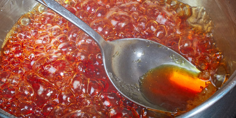 Bleiben Sie die ganze Zeit beim Zucker und beobachten ihn genau. Wenn der richtige Bräunungsgrad erreicht ist, kann es sich um Sekunden handeln bis das Karamell schon verbrannt ist.