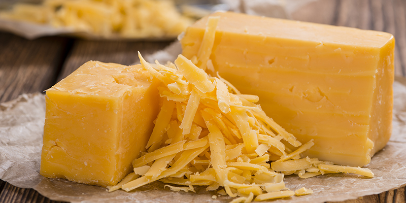 Den Cheddar Käse bekommt man ganzjährig im Handel zu kaufen.