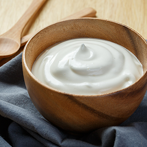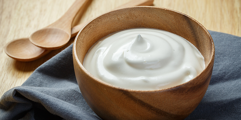 Die Dickmilch bekommt man ganzjährig im Handel zu kaufen.