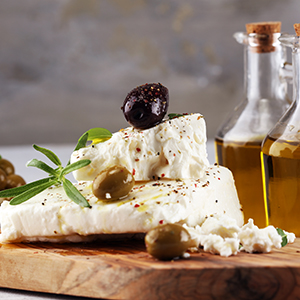 Der Feta ist so sehr verbunden mit Griechenland wie kaum ein anderes Lebensmittel. Sein Ursprung liegt, laut Legende, bei den Göttern. Kein Geringerer als der griechische Halbgott Aristaios soll den Menschen gezeigt haben, wie man Feta herstellt. Kein Wunder also, dass kaum jemand ihm wiederstehen kann. Sein Name bedeutet übersetzt auch Stück oder Scheibe und genauso wird er heute noch angeboten. Im Gegensatz zu anderem Käse, ist der Feta eher krümelig und weich. Man kann ihn aus Schafs- Ziegen- oder auch Kuhmilch herstellen. Wobei der originale Feta aus Schafsmilch (mindestens 70%) gemacht wird und nur Anteile von Ziegenmilch enthalten darf. Das haben sich die Griechen im Jahre 2002 schützen lassen. Käse der weniger oder gar keine Schafsmilch enthält, wird als Hirtenkäse bezeichnet. Aber so oder so, mit seinem salzig-säuerlichen und würzigen Geschmack, gehört er mit zu den beliebtesten Käsesorten auch in deutschen Küchen. Er ist auch als Proteinquelle für Vegetarier und Sportler sehr geeignet. Man kann ihn kalt z. B. im Salat oder als Dip ebenso genießen wie heiß. Er passt gebacken, gegrillt, paniert oder gebraten zu Gemüse und Fladenbrot.