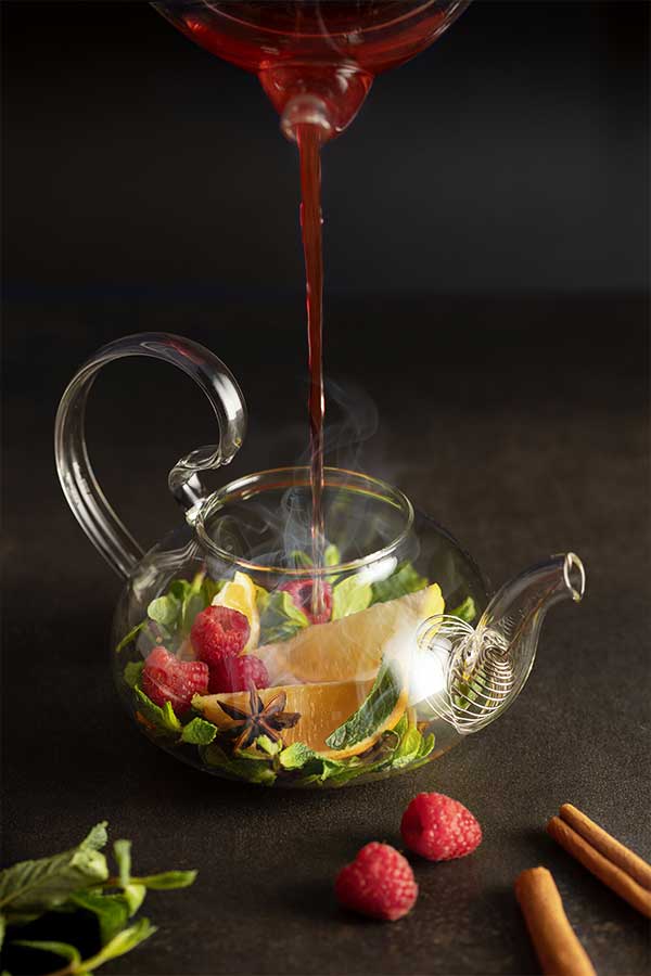 Viele Teesorten werden mit nicht mehr kochendem Wasser übergossen und zubereitet. Bei Kräuter- und Früchtetees bzw. Aufgussgetränken ist es etwas anders. Diese Aufgusssorten können durchaus auch mit 100°C heißem Wasser übergossen werden. Dabei spielt es keine Rolle, ob man ihn lose in die Tasse bzw. Kanne gibt oder einen Teebeutel oder ein Tee-Ei benutzt. Das Wasser darf durchaus etwas heißer sein als bei Kaffee oder Tee. Nach dem Übergießen lässt man Früchte- und Kräutertees gute 6 Minuten ziehen. So können sie ihr ganzes Aroma entfalten.