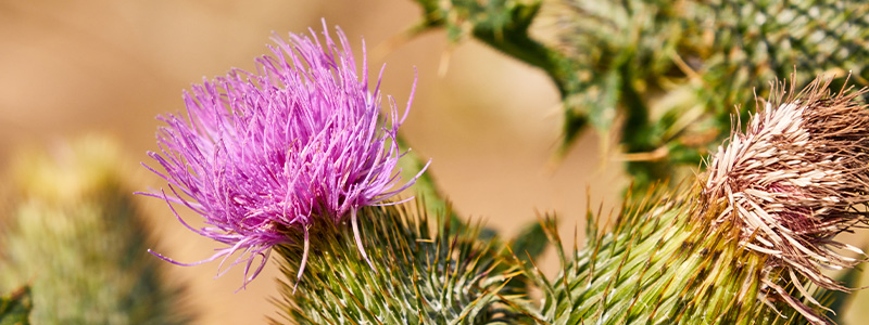 Die gewöhnliche Kratzdistel hat vielerlei gesundheitsfördernde Inhaltsstoffe wie z.B. Silymarin und kann bei Gallen- und Leberbeschwerden helfen.