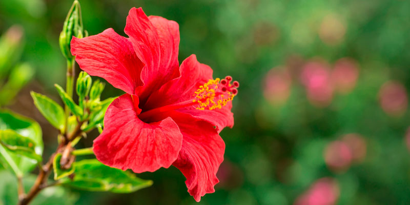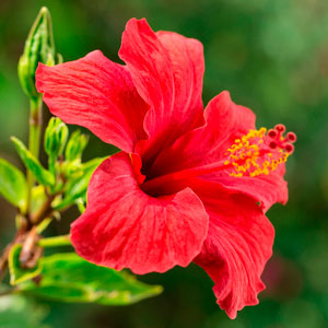 Der Hibiskus ist auch als Malve bekannt, da es ein Malvengewächs ist. Es ist ein krautiges Gewächs und wird ca. zwei Meter hoch. Es hat einen aufrechten, glatten Stängel, dessen Farbe je nach Sorte variiert. Die Blüten sind 6 bis 7 cm groß und können gelb, lila, rosa oder rot sein, am Schaft sind sie dunkelrot. Die Blüten öffnen sich am Morgen und verblühen schon am Abend desselben Tages wieder. Bevor die fleischig gewordenen Blüten verwelken werden sie geerntet. Ihre leuchtenden Blütenkelche werden getrocknet und mit ihren Samenkapseln als Obst verzehrt, zu Erfrischungsgetränken oder Gelee weiterverarbeitet oder aufgebrüht und als Tee getrunken. Hibiskus hat einen feinen säuerlichen Geschmack und wirkt erfrischend. In vielen Ländern kocht man ihn und reicht ihn als Beilage. Auch eignet sich Hibiskus gut zum Kochen von Pudding, Gelee oder Eisherstellung, da Hibiskus Pektin enthält und damit sehr gut bindet. In Afrika, Indien und Mexiko wird er auch medizinisch eingesetzt, da er den Blutdruck senken, harntreibend und fiebersenkend sein soll. In größeren Mengen regt er allerdings die Darmtätigkeit an und kann zu Durchfall führen.