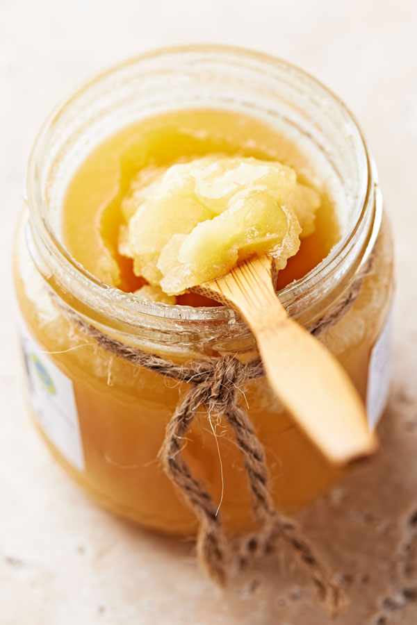 Honig gibt es in fester und flüssiger Form, da er eine Mischung aus Trauben- und Fruchtzucker ist. Je höher der Anteil an Traubenzucker in einem Honig ist, desto schneller kristallisiert er aus, wird also fest und undurchsichtig. Das ist aber kein Nachteil oder Qualitätsmerkmal, es ist einfach eine Geschmackssache. Besonders wenn Honig länger kalt gestanden hat, kann der Traubenzuckeranteil kristallisieren – erwärmt man den Honig vorsichtig im Wasserbad, wird er wieder flüssig.