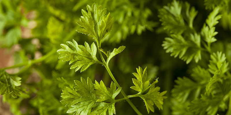 Der Kerbel gehört zu den Doldenblütlern und ist mit der Petersilie und den Karotten verwandt. Er kann bis zu 60 Zentimeter hoch wachsen und hat kleine weiße Blüten. Seine Blätter sehen ein wenig wie die von der glatten Petersilie oder dem Koriander aus, aber sie sind noch etwas feiner, zarter und heller. Schon rund zwei Jahrhunderte vor Christus kannten und schätzten ihn die Griechen und Italiener. Nach Deutschland kam er dann erst im 16. Jahrhundert. Dort wuchs er erst wild und wurde dann kultiviert. Kerbel wird auch als Heilpflanze zur Entwässerung des Körpers genutzt. Außerdem wirkt sein ätherisches Öl (Isoanthol) positiv bei Abzessen, Ekzemen und auch bei Gicht. Sein Aroma ist sehr angenehm süßlich und erinnert ein wenig an Anis. Wenn Speisen wie z.B.  feine Soßen, Salate oder Kräuterbutter mit Kerbel verfeinert werden, verleiht er ihnen einen frühlingshaft-frischen Geschmack, der Lust auf mehr macht. Aber auch zu Brokkoli und Frühlingsgemüse wie Gurken, Erbsen, Kohlrabi, feinen Möhren und Spargel passt er hervorragend.