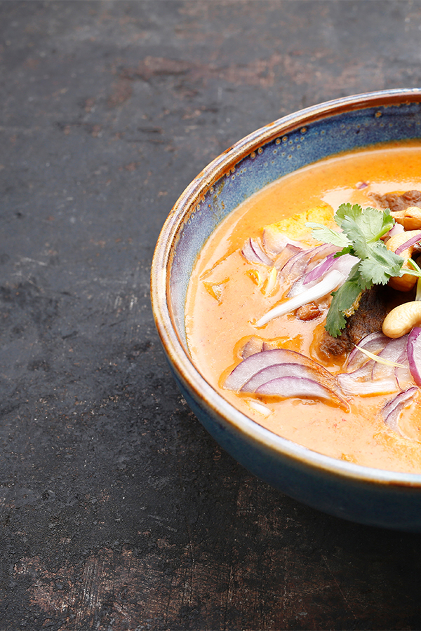 Die Massaman Curry Paste kommt ursprünglich aus dem Süden von Thailand. Man findet dort Gerichte mit den Namen Massaman Curry oder Kaeng Masaman oder auch Gaeng Matsaman, was Wörtlich übersetzt so viel wie Muslim-Suppe bedeutet. Diese Paste ist von einer milden Schärfe und trifft auch den Geschmack von Menschen mit empfindlichen Mägen. Es hat nur sehr wenig Chili- Extrakt in sich und ist daher von geringer Schärfe als die bekannteren Sorten der gelben, roten und grünen Thai-Curry-Pasten. Besonders gut schmeckt die Massaman Curry Paste in einem Erdnusscurry und auch zu Gerichten mit Kokosmilch, Reis und viel Gemüse. So wird ein Thai-Curry oder auch ein Hähnchen Curry sehr aromatisch und lecker.