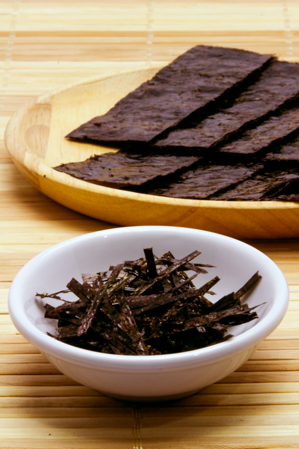 Kein Sushi-Fan kommt ohne Nori aus. Nori sind würzige Algenblätter aus Asien und sie eignen sich nicht nur als Hülle für Maki-Sushi. Man kann auch Nudeln und Suppen mit ihnen verfeinern und den Speisen eine gewisse Würze verleihen. Nebenbei sind Nori-Algen auch noch sehr gesund. Nori ist aber keine spezielle Algensorte, sondern eigentlich der Oberbegriff für verschiedene Rot- und Grünalgen. Insgesamt umfasst der Begriff etwa 30 Arten, die nicht im Meer wachsen, sondern vor allem an Flussmündungen. Schon seit vielen Jahrhunderten sind Algen ein fester Bestandteil der asiatischen Küche, doch erst zwischen dem 17. und 18. Jahrhundert begannen die Japaner, Noriblätter in ihrer heutigen Form zu produzieren und zu nutzen. Dazu werden die Algen nach der Ernte in Süßwasser gespült und dann zerkleinert. Danach presst man sie zwischen Bambusmatten zu hauchdünnen Blättchen und trocknet sie in speziellen Trockenkammern. Hochwertige Noriblätter werden auch in der Sonne getrocknet und sind so die Teuersten im Verkauf. Nach dem Trocknen werden die Blätter auf unterschiedliche Arten verfeinert. Für Sushi werden die Blätter z.B. geröstet. Man nennt sie dann "Yaki-Nori". Blätter die zusätzlich mit Sojasauce gewürzt wurden nennt man z.B."Ajitsuke-Nori".