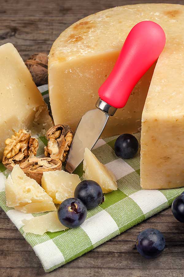 Als Pecorino bezeichnet man verschiedene Hartkäsesorten aus Italien, die aus Schafsmilch hergestellt werden. Heutzutage kann aus Kostengründen auch Ziegen- und Kuhmilch mit verwendet werden. Wie hoch der Anteil von Schafsmilch im Pecorino ist, kann man auf dem Etikett lesen. Nach wie vor werden die Sorten, Pecorino-  Sicilano-, Toscano-, Romano- oder Sardo Käse aus Schafsmilch hergestellt. Der Pecorino Romano war sogar schon vor über 2000 Jahren bekannt und wurde zu Rotwein genossen. Selbst bei den Legionären im alten Rom, war er ein fester Bestandteil der damaligen Verpflegung. Man bekommt Pecorino in drei Reifegraden zu kaufen. Der Frische, der Mittelreife und der Durchgereifte. Sein Geschmack wird mit der Reife immer kräftiger und würziger. Dieser Käse eignet sich, genau wie Parmesan, zum puren Genuss aber auch gehobelt zu Salaten, Pasta und Gnocchi oder zum Überbacken und zur Pesto Herstellung.