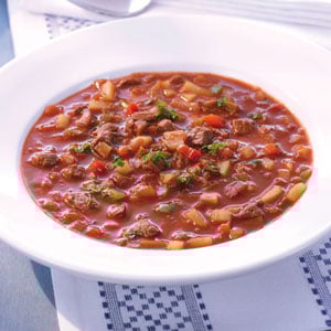 Die Rinderbrühe wird auch häufig als Bouillon bezeichnet. Dieser Name kommt aus dem Französischen und man findet ihn auf vielen Produkten z. B. in der Zutatenliste. Unter Rinderbrühe versteht man Fleisch und Knochen vom Rind, das zusammen mit Suppengemüse stundenlang ausgekocht und reduziert wurde. So erhält man eine herzhafte Brühe, die sehr schmackhaft ist. Rinderbrühe wird für sehr viele Gerichte benötigt. Egal ob Gulasch, Braten, Saucen, Eintöpfe, Suppen oder Schmorgerichte, mit einer guten Rinderbrühe wird alles herzhafter und kräftiger im Geschmack. Wobei man häufig auch in Rezepten einfach nur Fleischbrühe liest. Doch sollte man wissen das damit die klassische Rinderbrühe bzw. Buillon gemeint ist. Brühen jeglicher Art, es gibt reine Gemüsebrühen genauso wie Gänsebrühe, Entenbrühe, Hühnerbrühe oder Fischbrühe, gelten als gesund und kräftigend. So ganz ist das noch nicht bewiesen, doch weiß man, dass die Salze wie auch z. B. Zink und Eisen in der Brühe durchaus unsere Abwehrkräfte und unseren Elektrolythaushalt unterstützen.