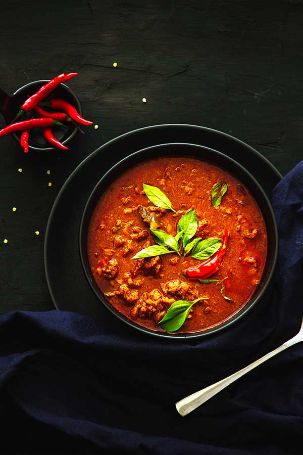 Die verschiedenen Varianten von Currypasten stammen aus Thailand und man findet sie in vielen Speisen wie z. B. Hühnchen Curry, Thai Curry oder auch in Linsen Curry als Würze. Auch andere Länder wie Indien, Indonesien oder Vietnam nutzen Varianten dieser Paste für ihre Speisen. Die verschiedenen Varianten der Currypasten unterscheiden sich nicht nur von Land zu Land, sondern auch farblich und in ihrer Schärfe. Was aber alle Currypasten gemeinsam haben ist, dass sie aus verschiedenen Kräutern (z. B. Kardamon, Ingwer) und Gewürzen (z. B. Pfeffer, Chili) bestehen. Dabei gilt das rote Curry als die schärfste Variante. Auch hier gibt es unterschiedliche Geschmäcker, je nach dem aus welchem Land sie kommen und welche Zutaten verwendet wurden. Doch grundsätzlich gilt; die rote Variante der Currypasten ist immer die schärfste Variante. Die Basis der roten Paste besteht immer aus roten Chilis, die dann kombiniert werden mit Knoblauch, Koriander, Garnelenpaste, Zitronengras und vielem mehr.