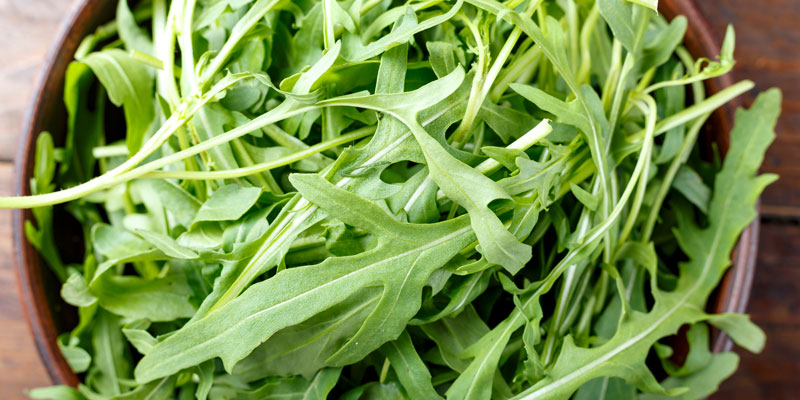 Der Rucola wird auch Rauke genannt. Er kann bis zu 75 cm hoch wachsen und hat gezackte Blätter. Damit erinnert er an Löwenzahn. Rucola hat einen leicht bitteren bis scharfen Geschmack. Früher dienten seine scharfen Samen als Ersatz für den damals sehr teuren Pfeffer. Heute isst man ihn vor allem in Salaten und auf Pizza, weil sein Geschmack und sein Aroma ein wenig an Kresse und Walnüsse erinnert. Rucola ist sehr schnell verzehrfertig: Einfach gründlich mit kaltem Wasser abwaschen und trocken schütteln. Dann die harten Stiele abzupfen und fertig.