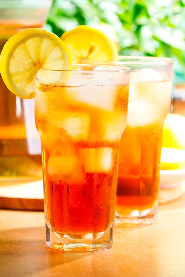 Und so geht’s: 1 Liter Wasser, ca. 6 Beutel schwarzer Tee, 2 Bio- Zitronen und Zucker wie auch Eiswürfel ganz nach Geschmack nehmen. Das Wasser zum Kochen bringen, etwas abkühlen lassen und dann für 5 Minuten den Tee dazugeben. Nicht länger, sonst wird er Bitter. Nicht kürzer, sonst können die Bitter- und Gärstoffe des Tees nicht den Koffeingehalt binden. Nun alles abkühlen lassen. In dieser Zeit eine Zitrone auspressen und die andere in Scheiben schneiden. Das Ganze dann zu dem Tee geben, gut umrühren und mit Zucker und Eiswürfel je nach Geschmack servieren.