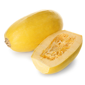 Der Spaghettikürbis ist ein Gartenkürbis der schon etwas früher im Jahr, als andere Sorten geerntet werden kann. Ursprünglich kommt er aus China und wird heute aber auch in den USA und Europa angebaut. Leider wird man ihn eher selten im Supermarkt finden. Doch man kann ihn selbst im Garten anbauen und auch so mancher Bauer bietet ihn auf Wochenmärkten an. Da die Nachfrage nach dieser Sorte steigt, ist die Chance groß, dass auch er immer häufiger seinen Weg in die Supermärkte schaffen wird. Er ist nicht der größte Vertreter der Kürbisse mit seinen ca. 25 cm Länge und ca. 800- 1500 g Gewicht. Sein Fruchtfleisch ist hell gelb und seine Fasern erinnern ganz leicht an Spaghetti. Daher hat er auch seinen Namen. Vom Geschmack her erinnert er ein wenig an Zucchini. Aber seine Schale ist sehr hart und bedarf etwas Kraft zum Öffnen. Einmal geöffnet eignet er sich wunderbar zum Füllen und zum Überbacken.