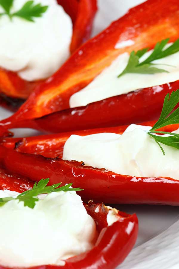 Die Spitzpaprika ist, wie auch ihre Verwandte die Gemüsepaprika, ein Nachtschattengewächs und hat ihren Ursprung in Südamerika. Von dort aus kam sie im 15. Jahrhundert nach Europa und wurde vor allem auf dem Balkan und auch in der Türkei schnell sehr geschätzt. Dort hat sie seit dieser Zeit einen festen Platz in der Küche gefunden. Vor einigen Jahren war sie noch eher selten in unseren Lebensmittelgeschäften zu finden, aber heutzutage bekommt man sie wirklich überall. Ihr Geschmack ist, im Vergleich zu der üblichen Gemüsepaprika, eher pfefferig-pikant aber dennoch angenehm süßlich. Es gibt sie in grün, gelb und rot im Handel. Aber egal ob grün, rot oder gelb, alle Schoten leuchten in einem kräftigen Rot sobald sie richtig reif sind. Spitzpaprika schmeckt sehr gut als Rohkost und im Salat. Sie eignet sich aber auch zum Braten, Kochen, Grillen oder fürs Füllen und Überbacken.
