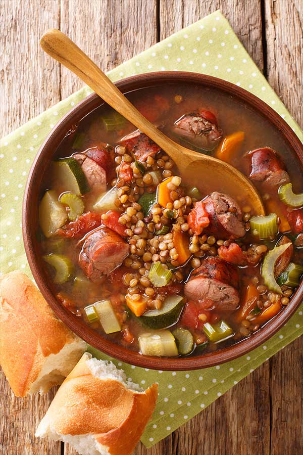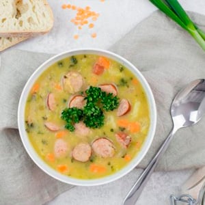 Super lecker und herzhaft ist immer ein Teller Linsensuppe wie von Oma und das ist nicht einmal schwierig selbst zu kochen. Dazu braucht man ca. 150 g Tellerlinsen über Nacht eingeweicht, 150 g klein gewürfelter Speck, 1 Bund Suppengrün fein schneiden, 3 Kartoffeln würfeln, 1 Zwiebel fein würfeln, 1 Liter Fleisch- oder Gemüsebrühe, Öl, Salz, Pfeffer, Kreuzkümmel und wer es sehr herzhaft mag, 3 Wiener Würstchen. Das Öl in einen großen Topf erhitzen und den Speck dazugeben. Dann die Zwiebelwürfel und beides anbraten. Nun das kleingeschnittene Suppengemüse und Kartoffeln dazu. Alles zusammen weiter anbraten, sodass sich Röstaromen entwickeln können. Dann löscht man alles mit der Brühe ab und gibt die Linsen hinzu. Deckel drauf und gute 30 bis 40 Minuten köcheln lassen. Nach dieser Zeit nur noch abschmecken und die Würstchen dazugeben und für weitere 5 Minuten ziehen lassen.  Manche mögen es Linsensuppe auch mit Zucker und Essig auf dem Teller gewürzt zu genießen. Guten Appetit.