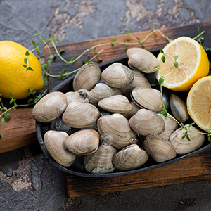 Die Vongole ist besser bekannt unter dem Namen Venusmuschel. Diese kleinen, leicht herzförmigen Muscheln, findet man in allen 7 Weltmeeren. Sie hat eine sehr feste, nach Marmor aussehende Schale. Es gibt mehrere 100 Arten der Venusmuschel und man findet sie in Ufernähe, wo sie einen sandigen Untergrund hat. Ihren Namen hat sie von der griechischen Göttin Venus bekommen, denn einer Legende nach wurde die Göttin Venus aus einer Venusmuschel geboren. Diese Muscheln haben ein helles Fleisch und einen starken Muschelgeschmack (kräftiger als der von Miesmuscheln), der leicht nussig ist. Häufig findet man diese Muscheln beim Italiener auf der Speisekarte als Spaghetti alle Vongole. Diese Pasta-Kreation ist besonders lecker und beliebt. Aber auch roh kann sie, ähnlich wie Austern, gereicht werden. Auf gemischten Meeresplatten darf sie ebenfalls nicht fehlen.
