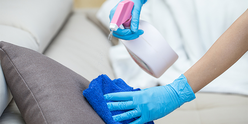 Reinigung von Kissen mit angefeuchtetem Tuch