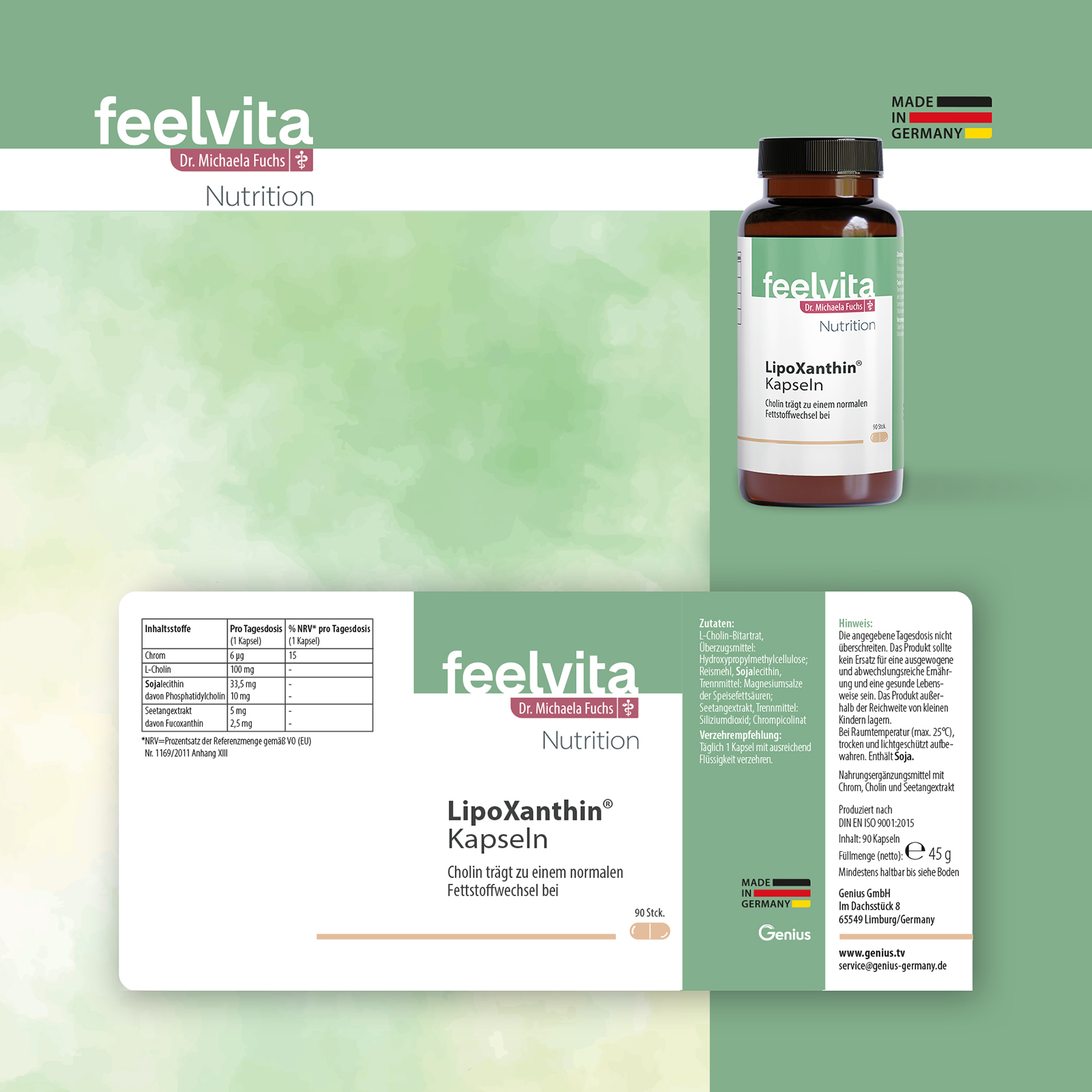 Die Herstellung in Deutschland gewährleistet hohe Qualitätsstandards und geprüfte Rohstoffe. Jede Charge wird sorgfältig kontrolliert, um ein reines und sicheres Produkt sicherzustellen. Durch den Verzicht auf Gluten, Laktose, Fruktose und Zucker eignet sich LipoXanthin® auch für ernährungssensible Menschen.
